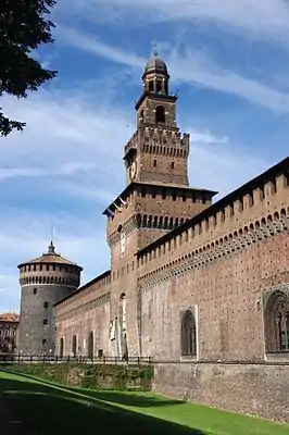 Миланский замок первоначально возведён в XIV веке как резиденция Висконти, но был разобран толпой восставшего народа после провозглашения Амброзианской республики. Отстроен Франческо Сфорца в середине XV века. Во второй половине XV века к украшению замка был привлечён Леонардо да Винчи; из его работ сохранились только пергола и рукопись с литературными опытами.