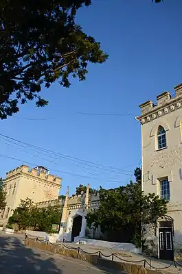 Замок в Новом Свете — здание, построенное князем Л.С Голицыным для проживания рабочих винного завода в форме средневекового замка в конце XIX века. В настоящее время в замке расположена администрация городка и гостиница.