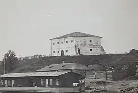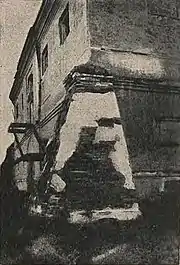 Каменное двухэтажное прямоугольное в плане здание размерами 21х14 м было накрыто вальмовой крышей. Углы укреплены мощными контрфорсами, которые по высоте доходили до середины второго этажа. В отделке фасадов были использованы элементы ренессансной ордерной пластики[1].