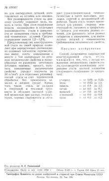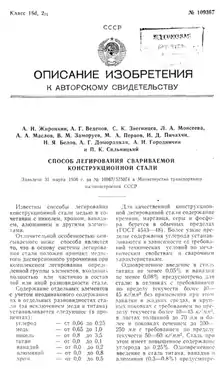 Заморуев В.М. является автором следующего патента «Способ легирования свариваемой конструкционной стали» № 109 367от 31.03.1956г.[1]