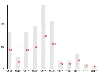 Согласно подворной переписи 1882 года в деревне проживали 25 семей, число жителей: 75 м. п., 67 ж. п.; разряд крестьян — временнообязанные[10].