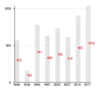 | 1928[14] | 1939 | 1990 | 1997 | 2002 | 2007[15] | 2010[16] |