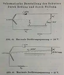 В «Хронике электротехники» VDE есть краткое упоминание о предложении AEG использовать зануление для сетей 380/220В в 1913 году[3].