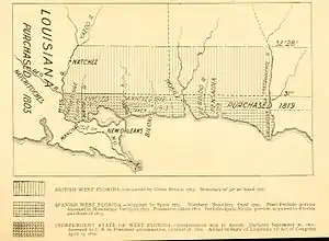 Потерпев поражение в Семилетней войне, Франция в 1762 году по секретному договору уступило Луизиану Испании. В 1763 году по официальному мирному договору Франция уступила территории Луизианы восточнее реки Миссисипи Великобритании, а Испания в обмен на захваченную Великобританией во время войны Гавану отдала Великобритании Флориду, не став также претендовать на восточную Луизиану. Британия посчитала, что новоприобретённая территория является слишком большой для эффективного управления, и разделила её по реке Апалачикола на две колонии: Восточную Флориду и Западную Флориду.