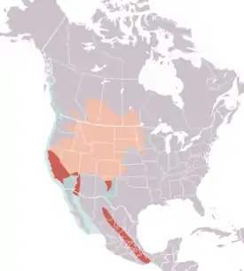Северные популяции на зиму мигрируют к тихоокеанскому побережью от юго-востока Аляски до западного побережья центральной Мексики. Некоторые особи обитают зимой на побережьях Мексиканского залива в штатах Луизиана и Техас.