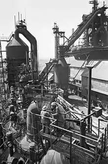 Работают доменный цех с тремя печами, два конвертерных цеха, пять конвертеров [9], прокатные станы 250, 251, 252, 450 [10].