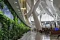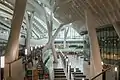 Огромные стены вокзала состоят из более чем 4000 стеклянных панелей неправильной формы, которые увеличивают поступление естественного освещения и экономят потребление электроэнергии. Искривлённый потолок изготовлен с применением 8000 тонн стали. Структуру атриума поддерживают девять пар крупных колонн различной высоты. Самая высокая колонна достигает 45 метров от этажа B3 до потолка. Некоторые залы вокзала украшены ценными произведениями искусства[12].