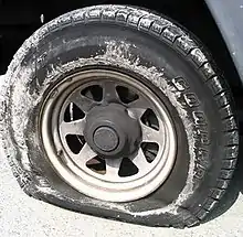 - В некоторых случаях автомобили оснащаются шинами «Run-flat», для которых отпадает необходимость запасного колеса. На других машинах возят баллончики ремонтной пены для заклеивания проколотых шин. Однако это часто не срабатывает в случае большого прокола и совершенно бесполезно при разрыве шины.