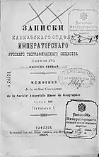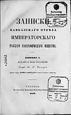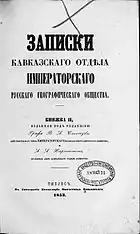 - Книжка I // Записки Кавказского отдела ИРГО = Записки Кавказскаго отдѣла Императорскаго Русскаго Географическаго общества / Ред. В. А. Соллогуб. — Тифлис: Типография Канцелярии наместника кавказского, 1852. — I-XXIV с., 1-278 с.