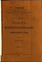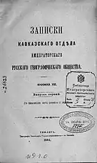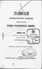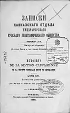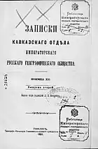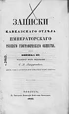 - Книжка VI // Записки Кавказского отдела ИРГО = Записки Кавказскаго отдѣла Императорскаго Русскаго Географическаго общества / Ред. Д. И. Коваленский. — Тифлис: Типография Главного управления наместника кавказского и военно-походной главного штаба Кавказской армии, 1864. — 1-42 с., 1-294 с., 1-132 с., 1-48 с., 1-122 с.