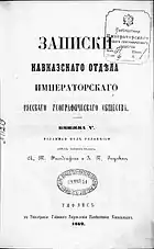 - Книжка V // Записки Кавказского отдела ИРГО = Записки Кавказскаго отдѣла Императорскаго Русскаго Географическаго общества / Ред. А. Т. Филадельфин и Л. П. Загурский. — Тифлис: Типография Главного управления наместника кавказского, 1862. — 1-151 с., 1-162 с., 1-94 с.