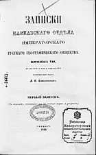 - Кн. II, ЗКО ИРГО, 1853, с. 1-296.