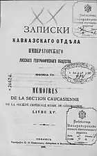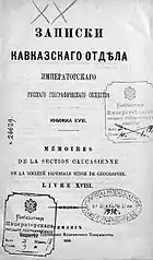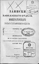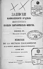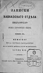 - Записки Кавказского отдела Императорского русского географического общества = Записки Кавказскаго отдѣла Императорскаго Русскаго Географическаго общества // Энциклопедический словарь [в 86 томах] / Под ред. К. К. Арсеньева и Ф. Ф. Петрушевского. — СПб.: Издатели: Ф. А. Брокгауз и И. А. Ефрон, 1894. — Т. XII (Жилы — Земпахъ). — С. 270. — 1-480 с.