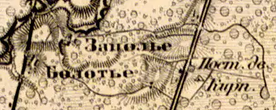 ЗАПОЛЬЕ — деревня принадлежит губернскому секретарю Стульгинскому, число жителей по ревизии: 33 м. п., 40 ж. п.; В оной питейный дом[4] (1838 год)