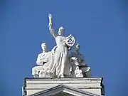 Скульптурная группа. Советские символы были заменены трезубцем в 2017 году[10]