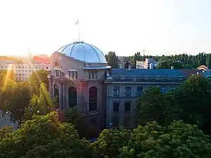 Адрес музея — ул. Троицкая, 29 (ранее ул. Чекистов). Здание, в котором с 1991 г. располагается краеведческий музей было построено в 1913—1915 гг. как городская земская управа. Архитектор А.С.Словьянов[11]. Здание является памятником архитектуры национального значения[12]. После земской управы в здании располагались первый городской совет, штаб Южного фронта, обком партии, исполком областного совета[13].
