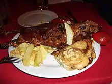 Примером блюда из удавленины является приготовленное мясо зайца, погибшего в силке.