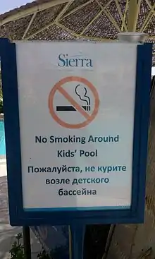 Курение запрещено во всех закрытых общественных помещениях, к которым относятся гостиницы, бары, рестораны, кафе и ночные клубы. Курить разрешается только на открытых местах.[11]