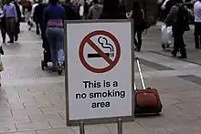 Вышедший в 2006 году в Соединенном Королевстве Health Act 2006 запрещает курение в общественных местах и на рабочем месте.[17] Также запрещено курение на футбольных стадионах. За нарушение правил взимается штраф в размере 50 фунтов стерлингов, при повторной попытке закурить возможно принудительное удаление нарушителя со стадиона.