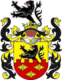 На золотом поле обращенный в правую сторону лев, выходящий до половины из-за красной стены, на которой видно четыре золотых камня. В XI столетии этот герб перенесен из Богемии[1].