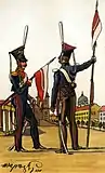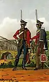 Карабинер Егерского лейб-гвардии полка (зимняя форма; слева) и егерь 14-го егерского полка (летняя форма).