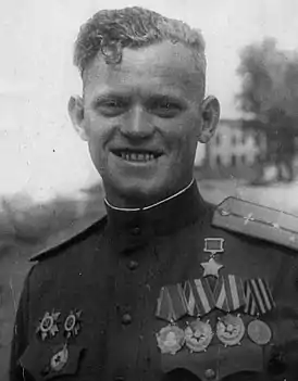 - Медаль «Золотая Звезда» (указ от 29 июня 1945, № 7470);