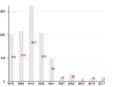 | 1879 | 1885 | 1910 | 1928 | 1961 | 1997 | 2002 |