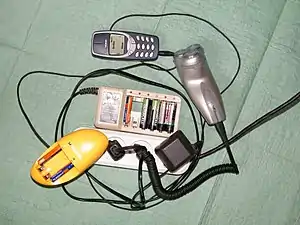 Беспроводное зарядное устройство / Индукционное зарядное устройство[3][4] применяется, с конца 2000-х годов, во многих мобильных устройствах.