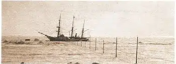 ![]() Шхуна «Заря» в 1902 году во время второй зимовки. |