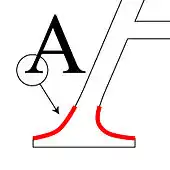 Засечки могут быть скругленными в месте соединения с основным штрихом (англ. adnate serif), а могут соединяться под углом и без скругления (англ. abrupt serif). Шрифт без засечек называется «sans serif» или «sans-serif» (от фр. sans — «без»). В некоторых типографских источниках шрифт без засечек называют гротесковым (рубленым) или готическим, а шрифт с засечками — романским.