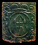 Кафельная плитка с гербом Сапег с Заславского городища.