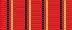 Медаль прикреплена к прямоугольной застёжке, обтянутой красной лентой с четырьмя чёрно-жёлтыми полосками, и носится на левой стороны груди выше других наград.