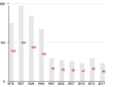 | 1879 | 1909[17] | 1928 | 1965 | 1997 | 2007[18] | 2010[19] |