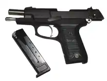 После выброса последней стреляной гильзы подаватель магазина цепляется за выступ затворной задержки и тем самым включает ее. Чтобы освободить затвор, нужно опустить затворную задержку пальцем. В пистолете ПСМ затворная задержка не выступает наружу, чтобы снять затвор с задержки, нужно оттянуть его назад до упора и отпустить. В некоторых образцах затвор освобождается автоматически, как только вставлен новый магазин (Mauser M1910[1], Heckler & Koch 4[2]). В пистолете Beretta M1934 затворной задержки как отдельной детали нет, затвор после израсходования последнего патрона останавливается, упираясь в задний край подавателя магазина.