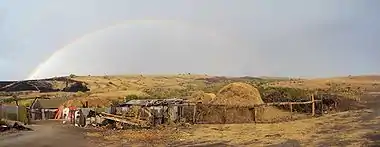 | Хуторская улица | Жилье у подножия холма | Радуга в окрестностях хутора | Въезд на хутор с восточной стороны |