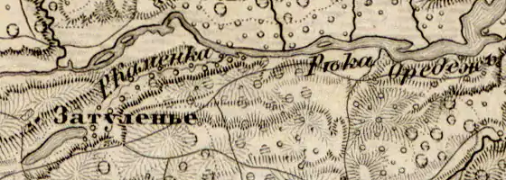 ЗАТУЛЕНЬЕ — деревня владельческая при реке Оредеже, число дворов — 20, число жителей: 60 м. п., 56 ж. п.[8] (1862 год)