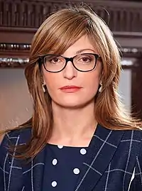 Екатерина Спасова Гечева-Захариева (болг. Екатерина Спасова Гечева-Захариева, род. 8 августа 1975) — болгарский политик и юрист. Министр иностранных дел Болгарии с 4 мая 2017 по 12 мая 2021 года. Ранее занимала различные посты в болгарском правительстве при Марине Райкове[1], Бойко Борисове и Георги Близнашки, в том числе пост министра регионального развития и благоустройства Болгарии, министра регионального развития Болгарии и министра инвестиционного проектирования Болгарии. С 18 декабря 2015 по 27 января 2017 года — министр юстиции Болгарии.