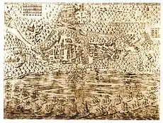 В мае 1624 года голландские войска под командованием Якоба Виллекенса захватили Салвадор-да-Баия у португальцев. Филипп IV, король Испании и Португалии, сформировал объединённый флот с целью возвращения города. Эскадра под командованием испанского адмирала Фадрике де Толедо вышла из Лиссабона, пересекла Атлантический океан и прибыл в Салвадор 1 апреля 1625 года[8]. Город был в осаде в течение нескольких недель, после чего пал. Это привело к изгнанию голландцев из города и близлежащих районов. Город позже стал играть стратегически важную роль, став португальской базой в борьбе с голландцами за контроль над Бразилией.