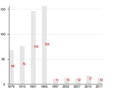 Число жителей по семейным спискам 1879 г.: 29 м. п., 35 ж. п.; по приходским сведениям 1879 г.: 22 м. п., 35 ж. п.