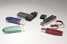 Электронный ключ (донгл), вставленный в один из портов компьютера (с интерфейсом USB, LPT или COM) содержит ключевые данные, называемые также лицензией, записанные в него разработчиком