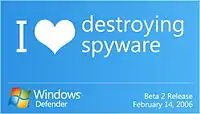 Релиз второй бета-версии Windows Defender состоялся 13 февраля 2006 года. Программа вышла уже под новым названием, была существенно переработана, содержала массу нововведений. Ядро было переписано на языке C++, тогда как оригинальный продукт от GIANT был разработан на Visual Basic[14]. Это существенно расширило возможности программы. Кроме того, теперь программа функционировала в качестве службы Windows, в отличие от предыдущего релиза, что обеспечивало защиту, даже если вход в систему не был выполнен. По этой причине Windows Defender фактически представляет собой интерфейс управления службой Windows, имеющей то же название. Вдобавок приложение теперь может контролировать большее число точек входа в систему, обладая при этом более простым и интуитивно понятным интерфейсом. Эта версия требует прохождения контроля подлинности через Windows Genuine Advantage.