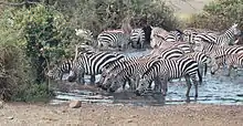 Члены группы могут чувствовать себя в большей безопасности по сравнению с одиночными особями, поскольку хищника может запутать численность скопления животных. Когда группа перемещается, хищнику труднее наметить цель для нападения. Подобным примером служит зебра. Неподвижная зебра хорошо заметна из-за крупного размера. Чтобы снизить риск быть съеденными, зебры перемещаются табунами. Полосатый узор на их шкуре может запутать хищника, затруднив ему фокусировку на одной конкретной особи. Кроме того, на бегу быстрое мелькание чёрно-белых полос притупляет его зрение[40].