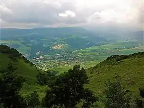 Населённый пункт находится в переходной от предгорной в горную зоне республики. Рельеф местности представляет собой разветвленную систему хребтов, возвышающиеся над селом по обоим его сторонам. Средние высоты на территории села составляют около 850 метров над уровнем моря. Над западной частью села возвышаются вершины — Заюко (1401 м), Харахора (1233 м), и Матхуко (1071 м). Также на территории села находятся множество надземных и подземных пещер, и древние подземные сооружения.