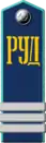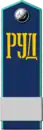 Средний, старший и высший начальствующий состав на левом рукаве (выше локтя) рубахи, пальто и шинели носит эмблему.