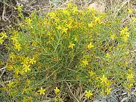 Зверобой трёхграннолистный — многолетний полукустарник около 20 см в высоту. Стебли твёрдые, крепкие, 3—4 мм в диаметре.