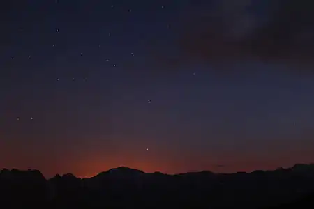 Звёздное не́бо — совокупность светил, видимых ночью на небесном своде. В основном это звёзды. Невооружённым глазом можно различить звёзды до 5-6 звёздной величины. При хороших условиях наблюдения (на безоблачном небе) можно увидеть до 800 звёзд до 5-й звёздной величины и до 2,5 тысячи звёзд до 6-й звёздной величины, большинство которых расположено вблизи полосы Млечного Пути (при этом, общее число звёзд только в нашей Галактике превышает 100 миллиардов)[1].