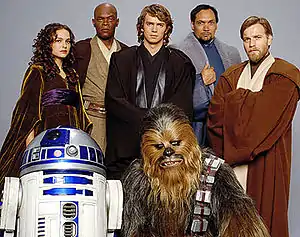 - Сэмюэл Л. Джексон в роли Мейса Винду: мастер-джедай, глава Совета ордена джедаев, умелый дипломат, опытный воин и генерал в Войнах клонов. Убит Палпатином.