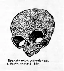 Исходной точкой для сюжета о черепе динозавра с искусственными повреждениями, по предположению Петра Чудинова, был череп вымершего бизона с отверстием, напоминавшим пулевое, который хранился в Палеонтологическом музее в Москве. Уже после публикации повести, в конце 1950-х годов териолог Н. К. Верещагин разъяснил, что это были следы болезненных свищей, вызванные паразитическими червями либо личинками оводов[4]. В переписке И. А. Ефремова замысел повести об ископаемом «ураните» (то есть «небесном жителе») упоминался в послании А. П. Быстрова от 25 мая 1945 года. Быстров скептически писал, что «человеческая фантазия не может создать ничего нового, ибо она спекулирует на старых представлениях… она их просто комбинирует, и в фантастических вещах фантастична только комбинация, а не составные части»[5]. В то же время учёный соглашался с философской идеей Ефремова об эволюции интеллекта, указывая, что органы зрения у всех живых существ, как позвоночных, так и беспозвоночных (включая медуз и пауков) устроены по единственно возможной форме, «как фотоаппарат». К письму был приложен рисунок черепа и дана вымышленная биологическая систематика: Uranotherum paradoxum s[apiens] bestia celestis Efr.[6] В послании от 12 июня того же года Быстров соглашался на использование описаний своей внешности, бытовых привычек и черт характера; его персонаж тогда носил фамилию «Костров». Алексей Петрович надеялся, что Ефремову больше никто не «бросит упрёков в том, что в рассказах нет живых людей». Продолжая конструирование небесного существа, он замечал, что биологически получилось не млекопитающее, а «черепаха-философ или стегоцефал-инженер». Также он предлагал сообщить, что на Земле эволюция такого существа породить не могла. Основным элементом костной системы у Bestia celestis должен быть кремний, а не кальций. Предложенная фантазия об эволюции жизни на иной химической основе позднее была использована при написании повести «Сердце Змеи»[7].