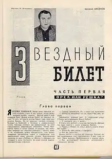Первым читателем рассказов, написанных молодым фтизиатром Василием Аксёновым в конце 1950-х годов, стал прозаик Владимир Померанцев, который показал их Валентину Катаеву. Тот сразу спрогнозировал возможности начинающего автора: «Он станет настоящим писателем». В течение двух лет журнал «Юность» опубликовал не только аксёновские рассказы, но и его повесть «Коллеги». После её выхода Василий Павлович предложил редакции познакомиться со своим первым романом, озаглавленным «Орёл или решка». Произведение было одобрено редколлегией и подготовлено к печати. В этот момент выяснилось, что на студии «Мосфильм» уже идут съёмки картины по мотивам романа, и её рабочее название несколько иное — «Звёздный билет». Секретариат «Юности» спешно поменял заголовок, оставив упоминание про «орла» и «решку» в названии первой части: именно в ней юные герои подбрасывают монету, решая, остаться ли им в Москве или отправиться в Прибалтику[1].