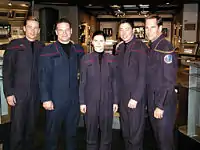 В качестве гостей шоу появляются такие известные артисты как: Питер Уэллер, известный по фильму Пола Верховена «Робокоп»[58], Брент Спайнер, прославившийся ролью Дейты в «Следующем поколении»[59], Джоанна Кэссиди, сыгравшая в кинофильмах «Кто подставил кролика Роджера» и «Бегущий по лезвию»[60], популярный музыкант Рик Ворти в роли зинди Джонара, Дэниел Дэ Ким, известный благодаря сериалу «Остаться в живых», в роли военного офицера мако, Келли Уэймайр в роли офицера по науке Элизабет Катлер, до этого актриса успела получить гостевые роли в «Вояджере» и «Секретных материалах», Сет Макфарлейн, известный как создатель мультфильма Гриффины, Марина Сиртис, исполнившая роль Дианы Трой в «Следующем поколении» и Джонатан Фрейкс, известный по роли первого помощника Райкера, а также как один из режиссёров франшизы.